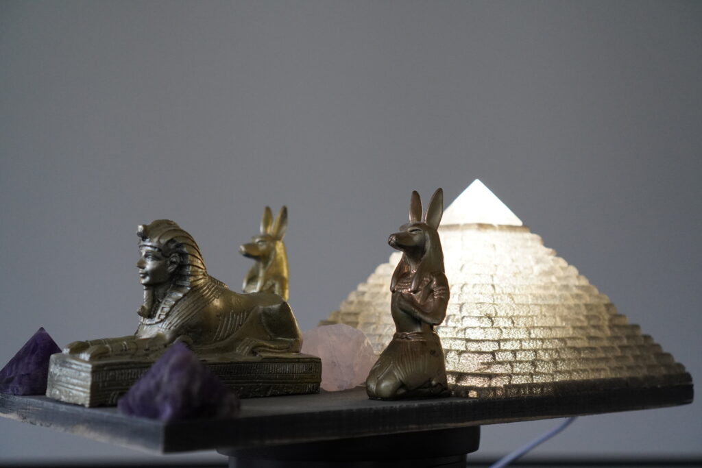Een uniek piramideobject met kristallen en orgonite wachters. Ontworpen als een stille krachtplek waar licht, harmonie en symboliek samenkomen.